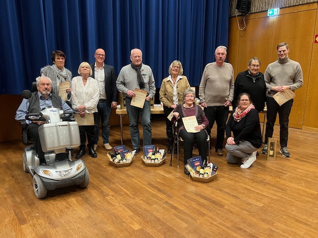 Im Anschluss an die sportlichen Ehrungen wurden die Jubilare ausgezeichnet. Insgesamt konnte die Turngemeinde 24 Mitglieder für ihre Treue und langjährige Vereinszugehörigkeit ehren. Als längste Mitglieder (70 Jahre) wurden Herr Herwig Guschelbauer und Herr Erhard Reichenbach besonders gewürdigt. Alle Jubilare erhielten als Anerkennung kleine Präsente.