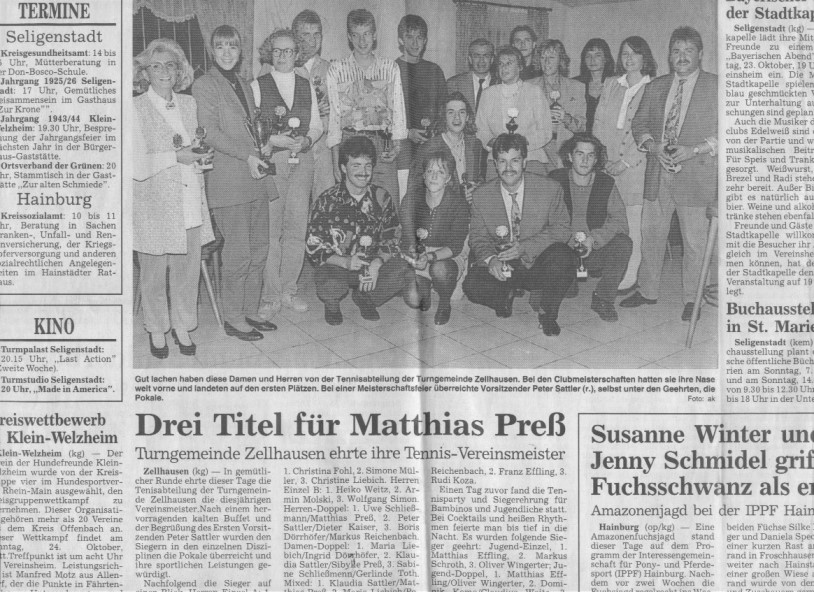 Abteilungsgeschichte: Die Chronik - 1993 Details Kategorie: Tennis Veröffentlicht: Mittwoch, 22. Oktober 2025 06:34 Zugriffe: 98849 Beitragsseiten Abteilungsgeschichte: Die Chronik 2015 2013 2012 2011 2010 2009 2008 2007 2006 2005 2004 2003 2002 2001 2000 1999 1997 1996 1995 1994 1993 1992 1990 1989 1978 1975 Alle Seiten Seite 22 von 27 Die Vereinsmeister 1993 Zurück Weiter Tennis